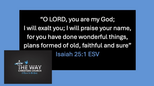 The Prophet Isaiah, speaks of days coming when Death will be swallowed up, the earth and the Heavens will be renewed and all will be made perfect once again as the Lord rules over all people. And He does indeed deserve our praise and worship for He is our God, a faithful God who does amazing things in our life as in days past. In reading through the prophets of old, Isaiah, Jeremiah to name a couple we can see all the wonderful plans God has already put into place in the lives of those who love Him. The Lord told of the plans He has, plans to prosper His people, plans to save His people, and He has done them. God sent His son to die on a cross to pay for the world's sin debt, and Jesus rose from the ashes of that grave to live in victory for all eternity, giving you forgiveness of sin, and eternal life in Him. O' Lord you are my God, and you have done wonderful things, you are forever faithful, full of love and mercy and grace, we praise you this day, Jesus Saves!