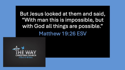 God is and has always been, He is the eternal being, He is the creator of all things ever created. This world, this universe, all the living creatures within this world, and every human being that has ever lived or will ever live. For without God putting all of this together and holding it all in place, it would not be as it is. So, when Jesus says that with man getting to Heaven is impossible, it is a statement of fact, for man on his own is feeble. But with God all things are possible, there is nothing that is impossible with God, He is almighty. To see this in action, read through the four Gospels and see all the mighty works God has done in the life of Christ Jesus. He healed people of lameness, blindness, deafness. He raised people from the dead, and He saved them from their sins. All of those miracles are impossible for man to do on his own, but with God all things are possible. If you have a Big issue in life today, cry out to God and ask Him to bring the impossible into the realm of possible through Him, Jesus Saves!