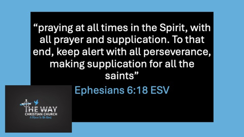Ephesians chapter six, the apostle Paul is explaining the importance of being ready always for what will come at you by putting on the armor of God every day. And after you have thought about each piece of armor, put them on your body for protection, then you are to apply what you know to prayer, praying at all times in the Spirit with all prayer and supplication. But just as you would not go out into this world without the protection of the armor of God, do not stop praying, pray constantly, lifting up the saints, your brothers and sisters in Christ Jesus. Prayer is not something we do to show we are Christians, prayer is something we do as a Christian, it is a critical part of our relationship with the Lord, be in constant communication with the Lord as you walk by faith daily, Jesus Saves!