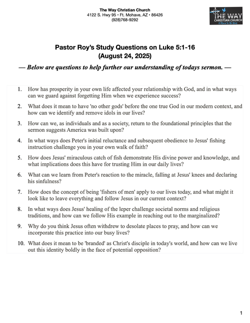 Study Questions on Luke 5:1-16 (August 24, 2025).