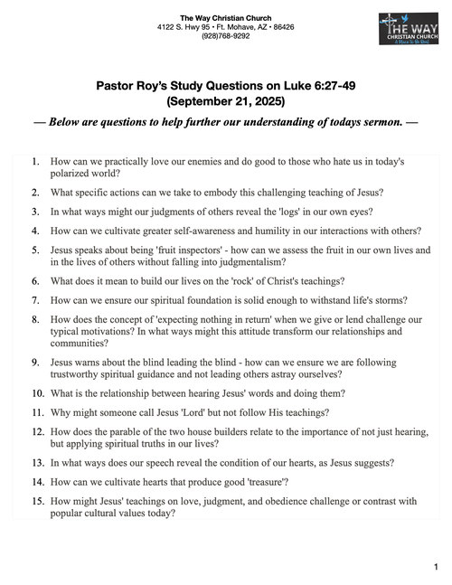 Study Questions on Luke 6:27-49 (September 21, 2025).