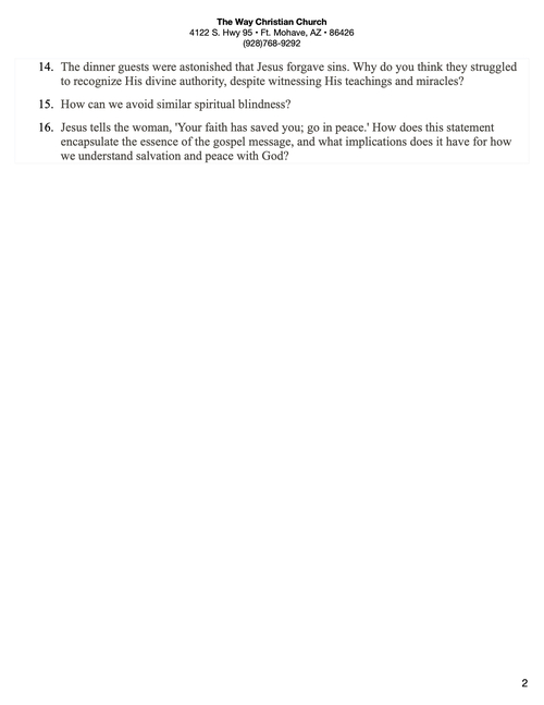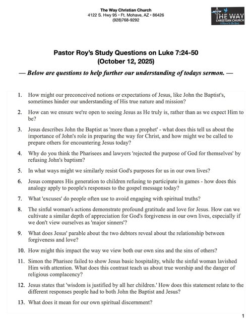 Study Questions on Luke 7:24-50 (October 12, 2025).