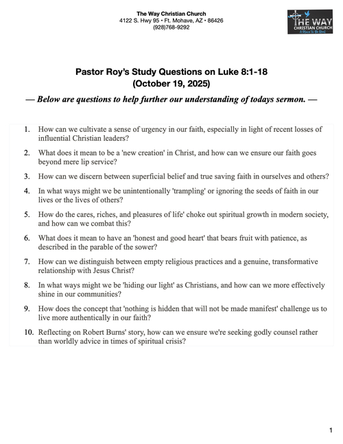 Study Questions on Luke 8:1-18 (October 19, 2025).