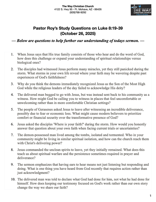 Study Questions on Luke 8:19-39 (October 26, 2025).