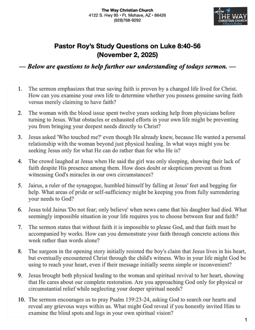 Study Questions on Luke 8:40-56 (November 2, 2025).
