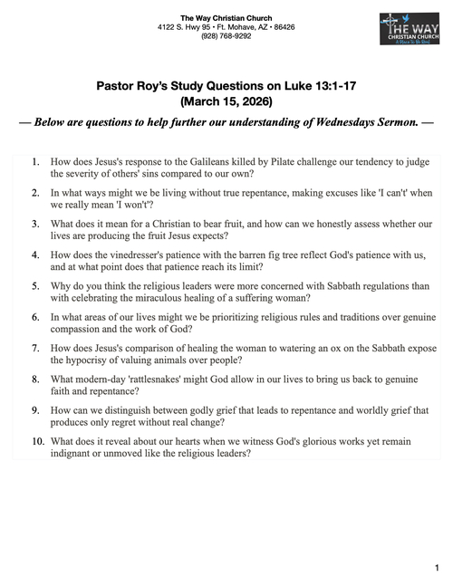Pastor Roy's Study Questions on Luke 13:1-17 (March 15, 2026).